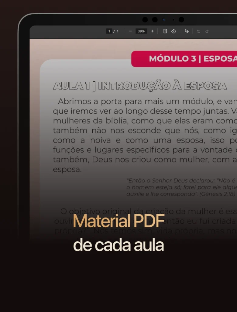As aulas são divididas em módulos que gradativamente vão aprofundando em temas relevantes para o dia a dia de toda mulher Cristã.