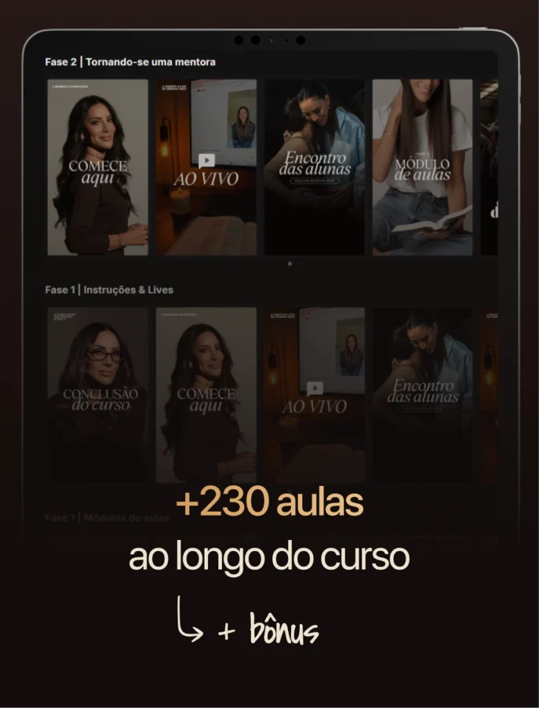 Aqui, você encontra mais do que aulas. Você entra em um ambiente de cura, crescimento e direcionamento — onde sua jornada com Deus é levada a sério e sua identidade como mulher cristã é fortalecida todos os dias.